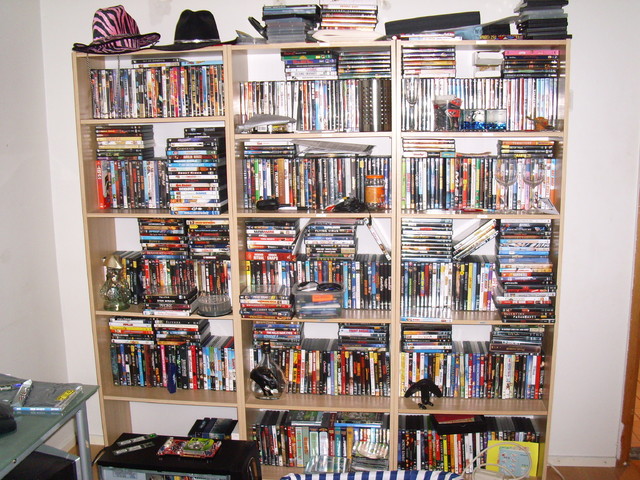 Diore Kirjoitettu 5. Syyskuuta, 2008 Kirjoitettu 5. Syyskuuta, 2008 liian pienet hyllyt,niinkun näkyy,leffat ei mahdu hyllyyn kunnolla..kaikki leffat ostettuja ja sellaisia mitä on halunnut nähdä..leffoja n.1000kpl..saa tulla lainaamaan