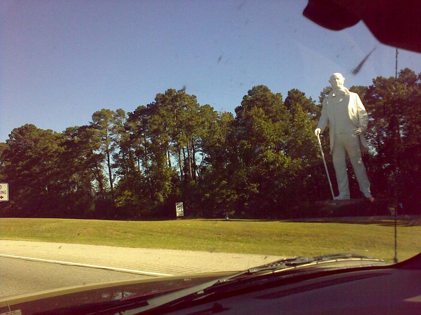 TexFinn Kirjoitettu 24. Lokakuuta, 2008 Kirjoitettu 24. Lokakuuta, 2008 Tallainen kaveri seisoskeli tien varressa lahella Houstonia. Jokohan Zuski on sen verran perehtynyt Texasin historiaan etta tietaa kuka on kyseessa?