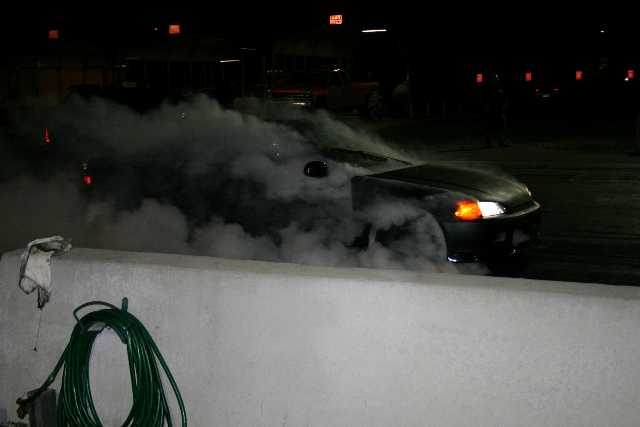 -vellu Kirjoitettu 15. Joulukuuta, 2008 Kirjoitettu 15. Joulukuuta, 2008 Käytiin Orlandossa katsomassa paikallista iltakiihdyttelyä. Siellä kiihdytellään pari kertaa viikossa ja nytkin keskiviikkona oli kalustoa paikalla saman verran kuin meillä esim. Hyvinkäällä tai Kiikalassa. Oheisesta kuvasta näkee etuvetoisen burniksen ongelmat. Oli muuten savua sisälläkin PALJON. Ei ehtinyt kunnolla tuulettamaan autoa ennen starttia