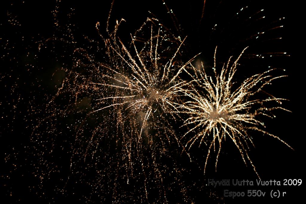 repa Kirjoitettu 31. Joulukuuta, 2008 Kirjoitettu 31. Joulukuuta, 2008 Nähty Espoon ilotulitus. Ei paha.