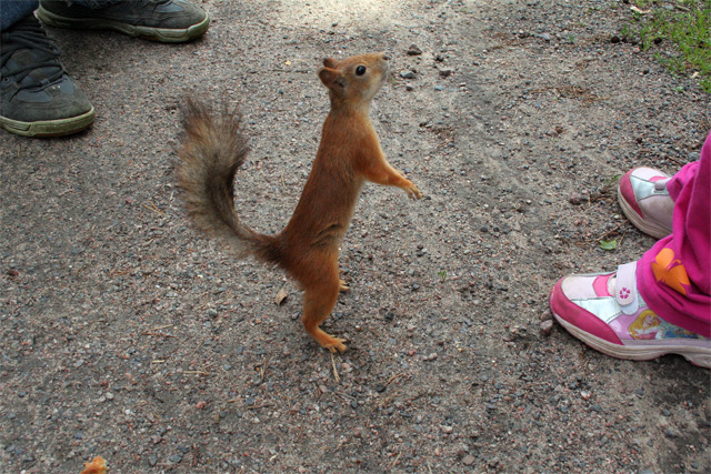 Sarita Kirjoitettu 8. Heinäkuuta, 2009 Kirjoitettu 8. Heinäkuuta, 2009 Tänään Seurasaaressa, Stadissa. Nasta paikka, ei uskois, että ollaan Stadissa. Suosittelen lämpimästi. Linnut ja oravat ovat tosin liiankin kesyjä. Tääkin orava kiipesi pikkulikan jalkaa pitkin kerjäämään ja kun huomasi, ettei mitään ole, niin sitten vasta läksi pois.