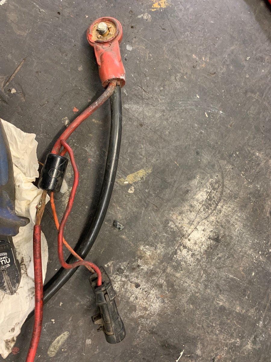 osilpi Kirjoitettu 13. Joulukuuta, 2021 Kirjoitettu 13. Joulukuuta, 2021 Akun plusnavalta lähtee paksu ja ohut kaapeli. Ohut kaapeli menee laturille. Ohuessa kaapelissa on musta möykky, jonka molemmista päistä lähtee piuhat liittimelle. Liittimestä toinen piuha lähtee ohjaamon suuntaan ja toinen korin edessä olevalle sulakkeelle. Sulake taisi olla ruiskulle? Tuo iso kaksinapainen liitin on osittain sulanut, joten ohitan koko liittimen. Mutta mikä on tuon sormen paksuisen mustan möykyn funktio? Onko se vain puristusliitos vai onko sisällä sulake tms?