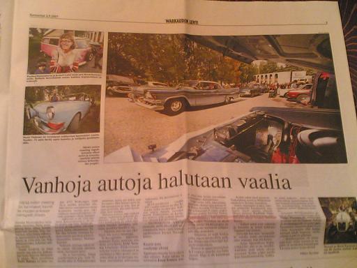 Ernesti Kirjoitettu 4. Syyskuuta, 2007 Kirjoitettu 4. Syyskuuta, 2007 varkauden lehessä oli juttua,näyttäs joku tumma firebirdi näyttäs olevan tuossa letkassa kolmantena. Joo, se oli semmonen sininen 91 Trans Am..