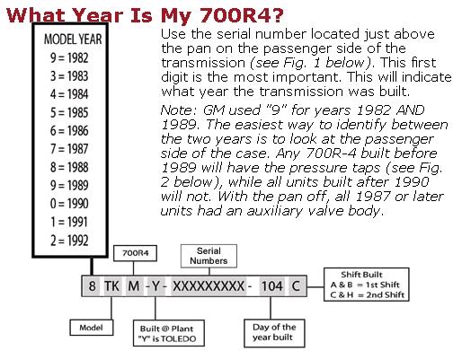Chevy Kirjoitettu 10. Heinäkuuta, 2009 Kirjoitettu 10. Heinäkuuta, 2009 löytyi vielä numero 6fam-y-00230558-317b näyttäs olevan -86 ja TH700R4