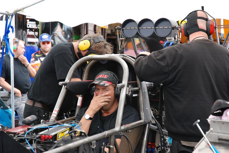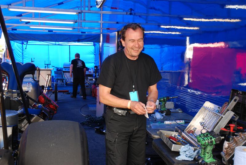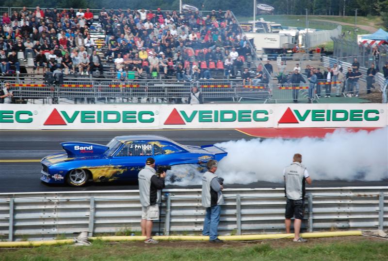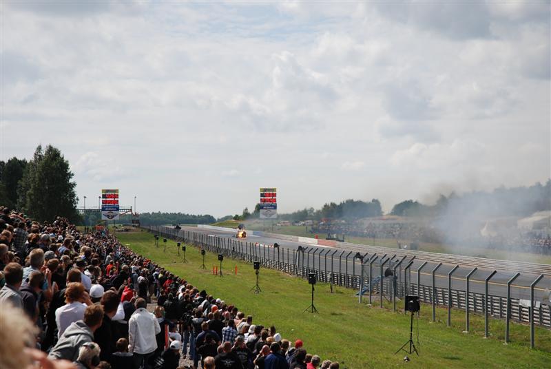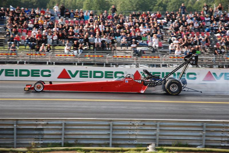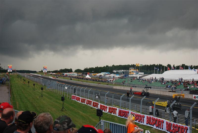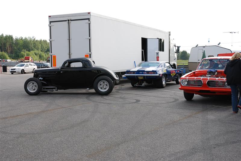 Guest SuS Kirjoitettu 1. Elokuuta, 2010 Kirjoitettu 1. Elokuuta, 2010 klo.15.45 ja rataa kuivataan edelleen Oli kyll totaallisen kökkö päivä tänään sään osalta. Useamman kerran sateen jäljiltä keli kuivui ja ratakin saatiin kuivaksi.. kunnes uusi sade pukkasi perään. Vihdoin siinä neljän pintaan Pro Modit pääsivät vetäisemään kaikki 16 kpl radan läpi, perään sitten nitroista Poutiainen Lehtimäkeä vastaan... Seuraavaksi kuuselle ajoivat Anita ja Persåkers ja just noin sekuntia ennen lähtöä toisessa päässä rataa lähestyi rankkasade ja kisa keskeytettiin.. Oli siinä vähän vaikeuksia saada ne nitrot sammuksiin.. Persåkersin mekaanikolta paloi hiha totaalisesti ja kun sai auton sammutettua niin työkalut lensi kaaressa ja isolla kolinalla... No kyllä sen ymmärtää, että ketuttaa kun kisan päätös on sitten tuo. Jos yleisöstäkin tuntuu mälsältä kun sade pilaa hyvän kisapäivän, niin voi vaan arvuutella, miltä se kilpailijoista tuntuu. Tämän päivän fotot on varmaan ihan hanurista, tarttee katsoa... No tuossa allaolevassa fotossa Lehtimäki ja Poutiainen ajaa just radalle ja taivas on viittä vaille repeämässä. Muutama minuutti tuon kuvan jälkeen räiski rakeita ja vettä tuli hetken ihan kaatamalla.